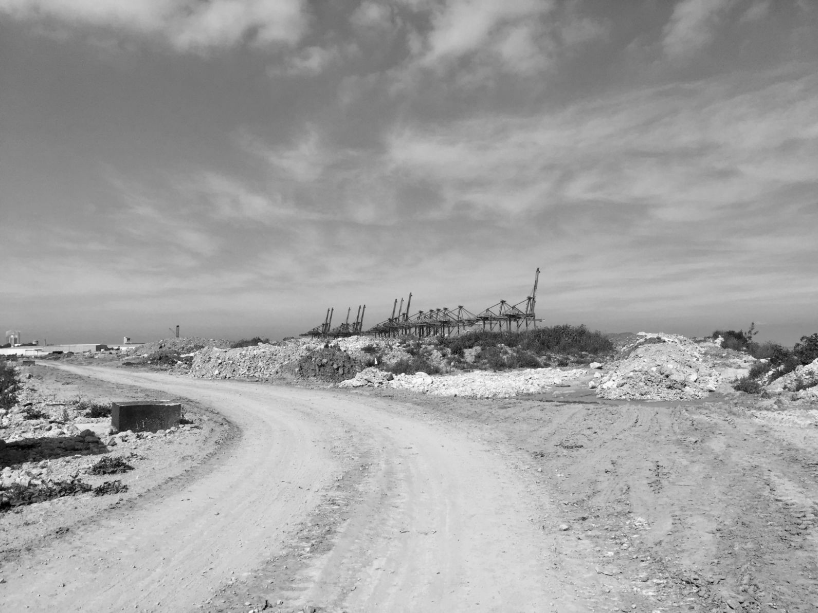 Links neben der Marina erhebt sich ein leerstehendes Plateau, eine unbestimmte, gelblich-braune Fläche, um die herum eine Kiesstraße planiert wurde. Sie ist nicht bebaut, fast unbewachsen, aber sehr groß. Nur ein paar streunende Hunde und junge Männer, die nach Altmetall oder verwertbarem Müll Ausschau halten, machen hier ihre verlorenen Suchgänge. Hinter dem Plateau kann man in der Ferne die Kräne der Containerterminals erkennen.