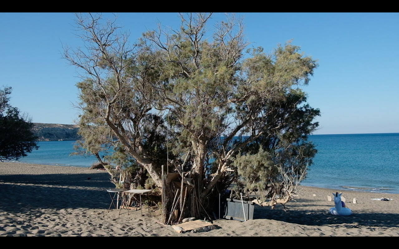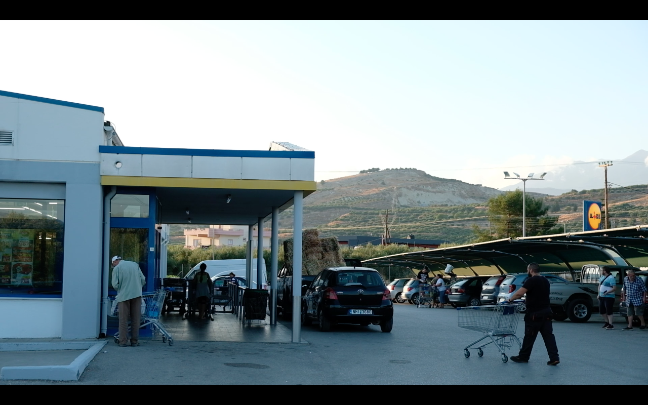 Because paradise is always based on material surrogates, it needs containers that provide its ingredients with a little shelf life. It is amphorae, baskets and glass tubes in which the oil, the scents and the salt of the earth can be stored. The goods that supply the holiday paradise on the Southern coast of Crete, on the other hand, are delivered in shipping containers to the port of Heraklion and transported to the Messara plain by truck, on the newly built motorway. On the opposite lane, tomatoes and cucumbers wrapped in plastic, which are cultivated for the European market based on excessive use of strong pesticides, leave paradise.