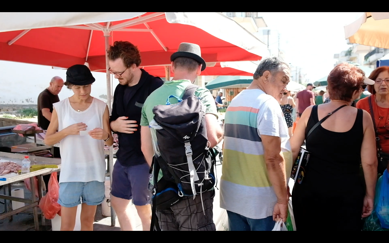 Much of what Paula and I have found out about the entanglements on the island of Crete is based on the stories and narratives of the people we have met. The web of their stories is interwoven with the rumours and fabulations of the island itself - the famous Cretan kutsobolio. Nikos Doulgerakis, the owner of the distillery in Zaros, for example, tells us about fake herbs that are shipped from North Africa to Crete and then sold as real Cretan herbs. He tells us about his time in the army, and that to keep his business with olive oil, essences and herbs afloat is much harder a fight than he ever fought during his military times. Now, he says, the enemy is in his back. At the dam in Faneromeni, which secures the water supply for the Messara plain, we meet the German engineer Walter Hochstein, who supervised the construction work here a few years ago. He shows us the small leakage in the dam where water is constantly leaking out. It is used to irrigate the olive groves of the farmers in the valley without them having to pay for it. The Vardinogiannis family was described to us by Yannis Giannoutsos, who runs a well-known herb shop as Mr. Botano in Kouses. Other informants not yet mentioned by name are Dr. Alexandra Rassidakis, Elena Vasnaki, and Paula's hosts Nikos and Maria.