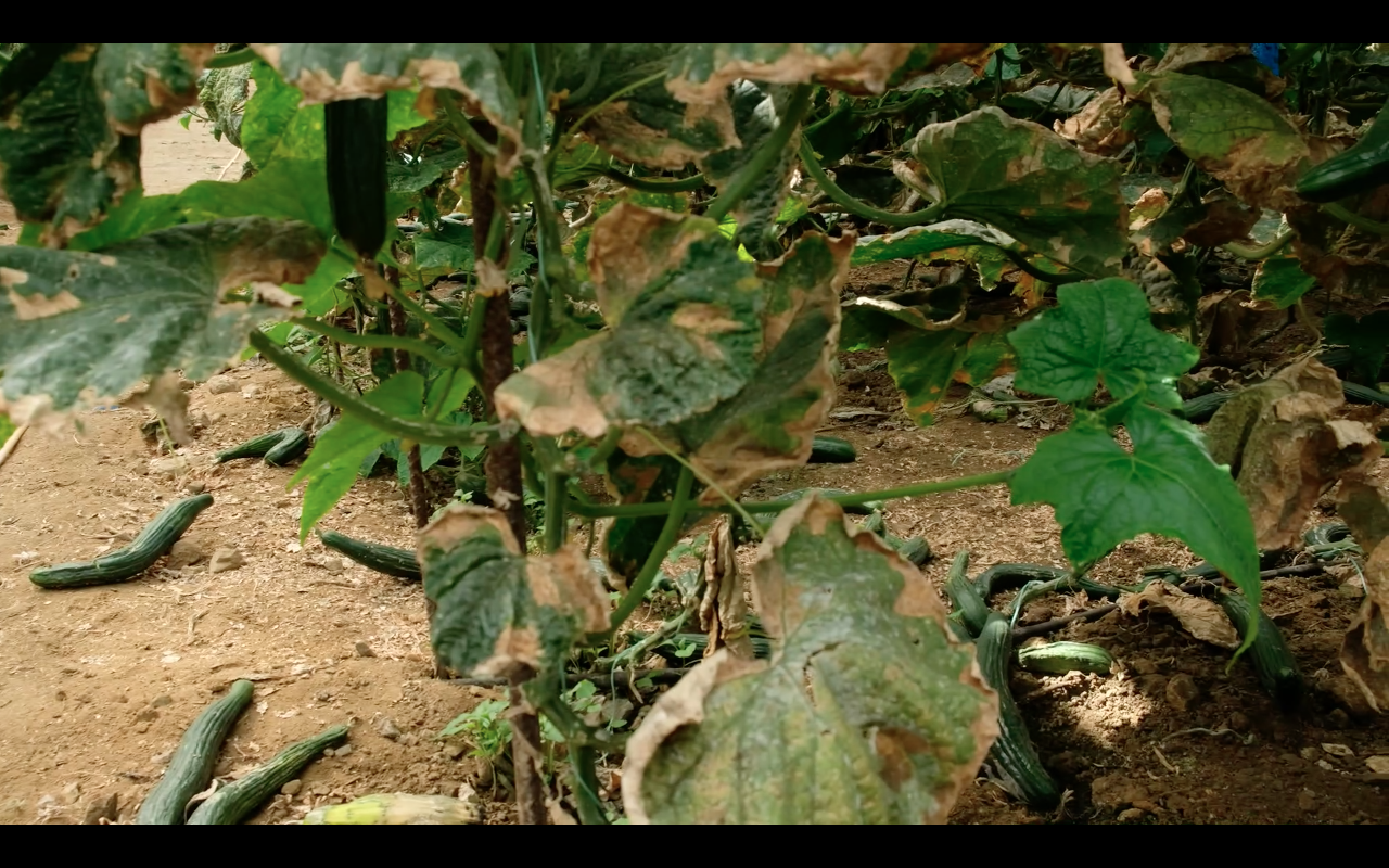 The cucumbers keep on growing without anybody harvesting them. Like dead snakes, they lie around on the floor of the grandiose, heated greenhouse, announcing the improbable prospective end of capitalism. Who knows, maybe one day they will wake up and offer us a second apple, which might lead back to paradise. For the time being, the cucumbers celebrate a mourning ritual directed towards the future, unseen and unheard of, only accompanied by the warm wind that tugs at the plastic walls of the greenhouse.
