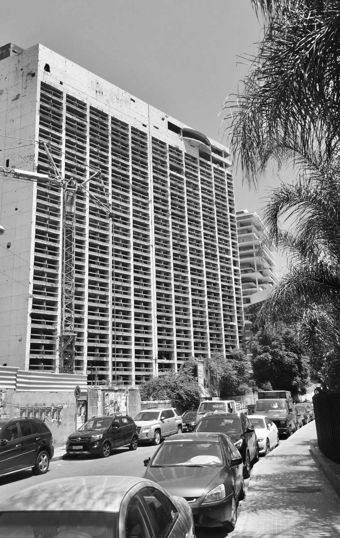 Architektonisch erinnert in Beirut heute nur noch wenig explizit an den Bürgerkrieg. Nur wer darauf achtet, kann an manchen Wänden noch Einschusslöcher finden. Am Rande der Innenstadt steht ein solches Monument: ein großes, teilweise zerbombtes Hotel namens Holiday Inn. Es ist das Hochhaus der Sniper. Nur zwei Jahre nach seiner Eröffnung, die ganz im Zeichen des Tourismusbooms der 60er- und 70er-Jahre steht, wird das Hochhaus zur Kampfzone. Christliche und muslimische Milizen versuchen, es zu erobern. Es wird geplündert, die Einrichtung, inklusive Silberlöffel und -messer auf den Straßen der Stadt verkauft. Nach dem Krieg steht es leer, dann gibt es Sommerparties im Keller. Heute ist es eine Armeebaracke voller Graffiti, und Politiker*innen streiten darüber, was aus dem alten Hotel werden soll. Im Erdgeschoss stehen Panzer.