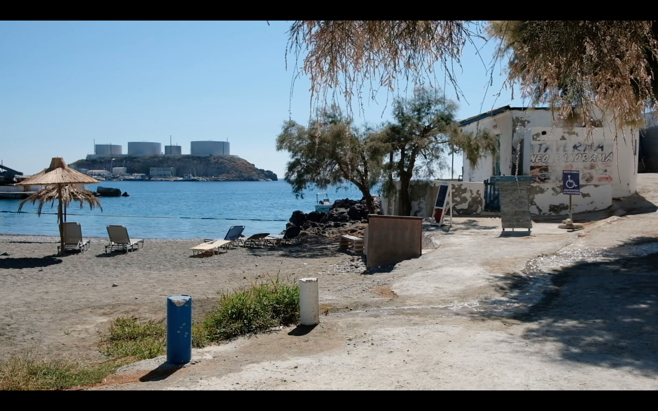 The filmmaker and author Paula Hildebrandt and I spent several days in Kali Limenes in order to get a better understanding of the place. However, our request to visit the bunkering station for artistic research purposes is being rejected by the SEKA several times. Paula thus tries to swim to the island, but does not enter it. Later on, local fishermen take us on a trip around the island for a small fee. One of the fishermen, Minos, who is named after the mythical first king of Crete, tells us about various safety exercises which the SEKA performed just recently, in which oil disasters were simulated. I ask Minos if he has ever been allowed to enter the island. He denies. We have not been able to enter the bunkering station either.