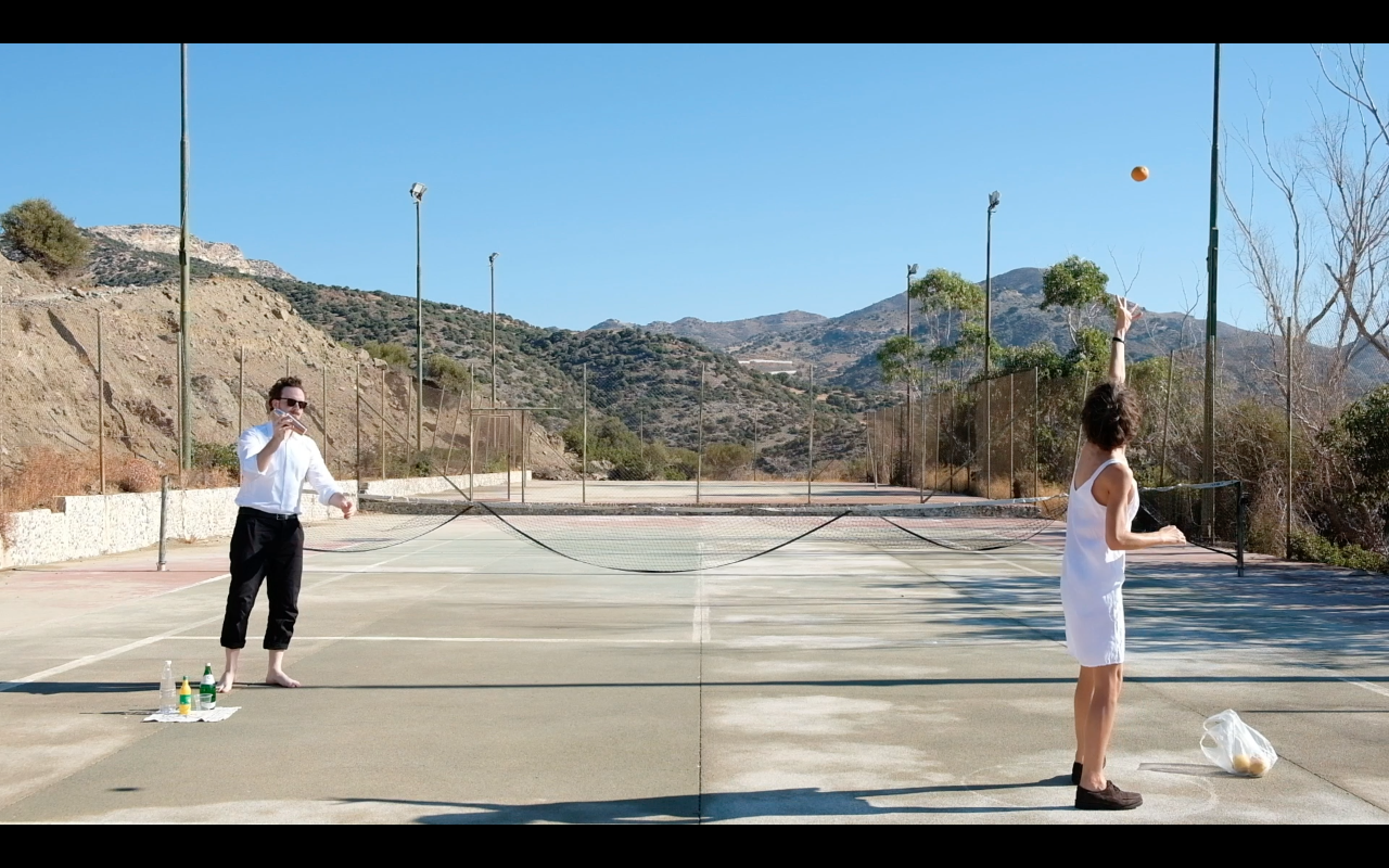 On the derelict tennis court of the Vardinogiannis hotel, Paula and I play tennis and mix drinks. Rumour has it that the hotel complex used to include a (mini)golf course. More on this later.