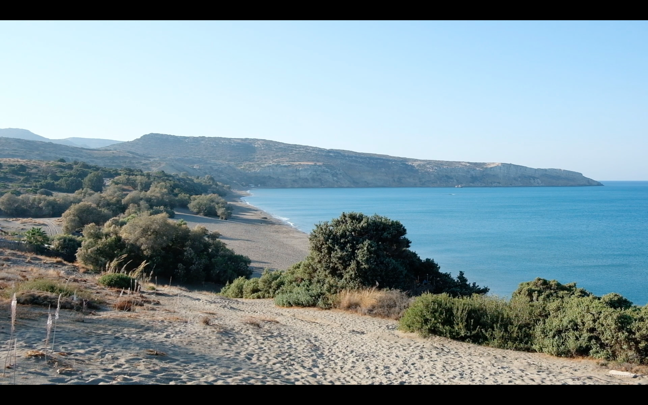 In contrast to the bay of Kali Limenes, the beautiful, long beach of Kommos is world famous. It lays next to the fertile Messara plain, bordered to the east by the Asterousian Mountains and to the north by the mighty Psiloritis massif, the mythical Mount Ida. In summer, the beach is in the hands of German individual tourists. Since the 70s, Germans have been traveling to the area around Pitsidia, where Paula and I stay. At the beach, they get their coffee and sweets from Kuchen-Uwe (Cake-Baking-Uwe). The German dropout hosts his guests at his ‘base camp’, an old tamarind tree that provides shade and serves as infrastructure. The village of Matala, where in the 1960s young American men moved into Neolithic caves instead of going to the Vietnam War, and were in turn visited by Joni Mitchell and Cat Stevens, among others, is pretty famous, as well.