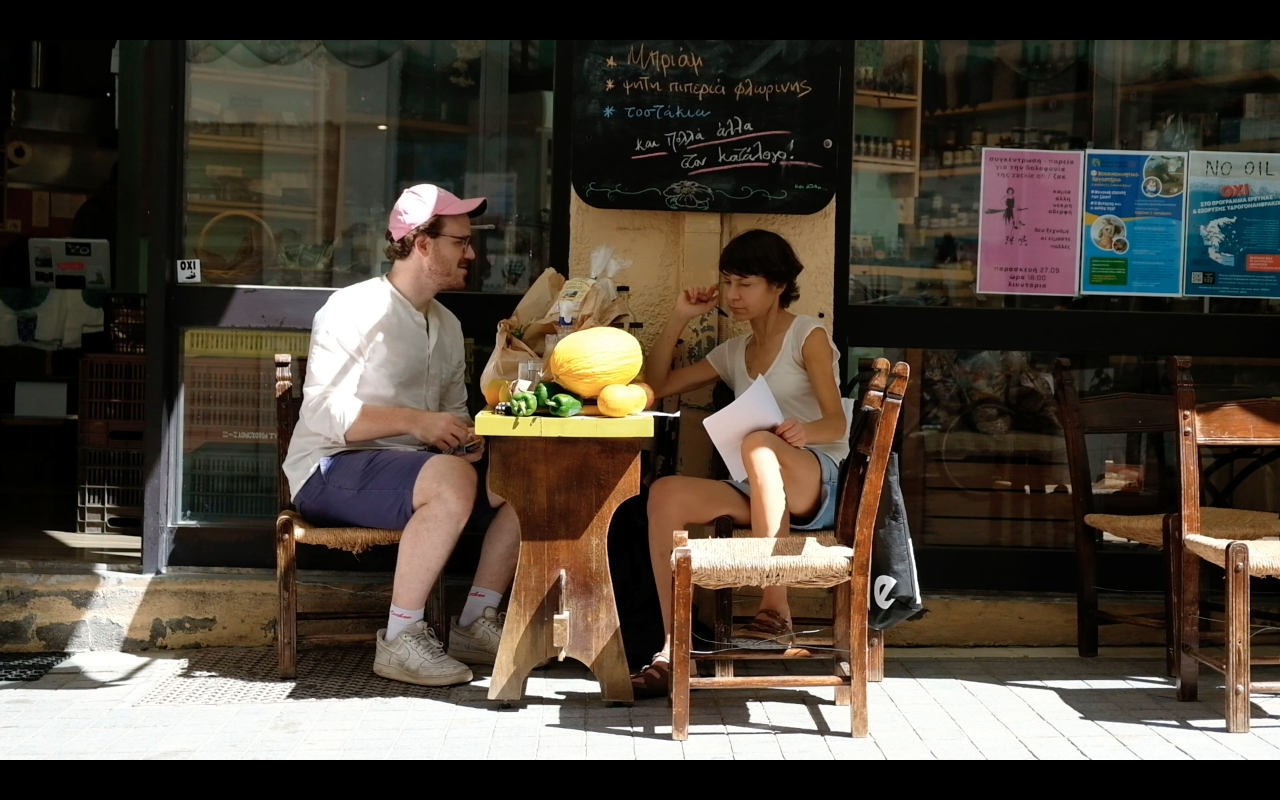 In Heraklion, the activist Michalis tells us about the possibility of producing organic diesel from recycled deep-frying oil. The cooperative is interested in using the industrial process on a small scale to cover its own fuel needs. The machine has already been purchased, the only thing missing is methanol, which is not available in Greece. With that material in hand, the old oil could be turned into new diesel and in turn power the machines that would harvest the olives. It would be a kind of modular refinery.