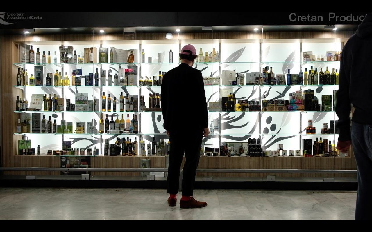 Because paradise is always based on material surrogates, it needs containers that provide its ingredients with a little shelf life. It is amphorae, baskets and glass tubes in which the oil, the scents and the salt of the earth can be stored. The goods that supply the holiday paradise on the Southern coast of Crete, on the other hand, are delivered in shipping containers to the port of Heraklion and transported to the Messara plain by truck, on the newly built motorway. On the opposite lane, tomatoes and cucumbers wrapped in plastic, which are cultivated for the European market based on excessive use of strong pesticides, leave paradise.